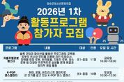 시민행정신문 강갑수 기자 | 화순군은 오는 12월 11일부터 12월 17일까지 청소년문화의집에서 '2026년 1차 활동프로그램 참가 청소년 53명을 모집한다고 밝혔다. 청소년문화의집은 시설을 이용하는 청소년과 운영위원회의 의견을 반영해 ▲자율주행로봇 햄스터 ▲K-POP 댄스 챌린지 ▲도전! 골든 라이벌 ▲청소년 탁구 교실 ▲튼튼 쑥쑥 헬스 교실 5개 프로그램을 2026년 1월 9일부터 4월 25일까지 매주 해당 요일에 운영할 예정이다. 신청 기간은 12월 11일부터 17일까지이며, 화순군에 거주지를 둔 초·중·고 또는 학교 밖 청소년을 대상으로 접수한다. 화순군 청소년문화의집 누리집공지 사항에 게재된 양식을 내려받아 작성하여 방문 신청하거나, 이메일로 신청하면 된다. 기타 궁금한 사항은 화순군청소년문화의집 대표번호로 문의하면 된다. 서봉섭 가족정책실장은 “내년에도 청소년의 행복과 안전에 중점을 둔 특색 있는 프로그램을 제공함으로써 다양한 경험과 체험을 바탕으로 건강히 성장할 수 있도록 지원하겠다.”라고 전했다.