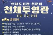 시민행정신문 강갑수 기자 | 구리시는 오는 1월 13일부터 24일까지 인창도서관 옥상에 설치된 천체투영관의 시범운영을 실시한다고 밝혔다. 인창도서관은 2025년 1월 실체 천문 관측이 가능한 천문대를 개관해 운영해 왔으나, 눈비 등 기상 여건으로 관측이 어려운 한계를 보완하기 위해 천체투영관을 추가로 조성했다. 천체투영관은 지난해 8월 착공해 약 5개월간의 공사를 거쳐 12월 준공됐으며, 정식 개관에 앞서 시설과 프로그램의 완성도를 점검하고 이용자 의견을 수렴하기 위해 이번 시범운영을 진행한다. 인창도서관 천문대에는 돔형 관측실과 함께 250mm 굴절망원경과 태양망원경이 설치돼 있으며, 이번에 새롭게 조성된 천체투영관은 약 84㎡ 규모로 지름 7m의 경사식 반구형 돔 스크린과 최대 6K 해상도의 디지털 천체 투영기를 갖추고 있어 선명한 화질로 천문과학 영상과 별자리 관람이 가능하다. 또한 천문대와 연계 운영을 통해 천체 관측 시 별자리 이해를 돕고, 도심에서는 보기 어려운 은하수 관람 체험도 제공할 예정이다. 시범운영 프로그램은 기간 중 총 7회차로 운영되며, 사전 신청자 중 선착순으로