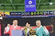 시민행정신문 장규호 기자 | 증평군청 인삼씨름단(감독 연승철, 코치 서수일) 소속 이완수 선수가 울산광역시 울주군 울주종합체육관에서 열린 ‘위더스제약 2025 울주추석장사씨름대회’에서 소백장사(72kg이하) 타이틀을 거머줬다. 이완수 선수는 4일 열린 결승전에서 울주군청 소속 김덕일 선수를 접전 끝에 3-2로 제압, 개인 통산 세 번째 장사에 오르는 영예를 안았다. 이 선수는 8강에서 임주성(MG새마을금고씨름단), 4강에서 이현서(의성군청) 선수를 각각 2-1로 승리하며 결승에 진출했다. 결승전에서는 홈그라운드 이점을 안고 나온 김덕일 선수에게 초반 두 판을 내줬으나, 3판째 김 선수의 경고패로 한 점을 만회하며 분위기를 바꿨다. 이후 두 판 연속 강력한 잡채기로 상대를 넘어뜨리며 극적인 역전승을 거뒀다. 이번 우승으로 이 선수는 지난 ‘2025 설날장사씨름대회’ 소백장사에 이어 올 시즌 2관왕을 달성, 씨름 명문 증평군청 인삼씨름단의 위상을 다시 한 번 높였다. 연승철 감독은 “증평군민들에게 추석장사씨름대회에서 승리의 소식을 안겨주게 돼 매우 기쁘다”며 “이번 대회 남은 체급에서도 좋