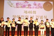 시민행정신문 기자 | 안양시는 20일 오후 2시 시청 강당에서 제46회 장애인의 날 기념식을 열고 장애인과 비장애인이 함께 어우러지는 화합의 장을 마련했다고 밝혔다. '당연한 일상, 모두가 누릴 수 있도록'을 주제로 (사)안양시장애인단체총연합회가 주관한 이날 행사에는 관내 장애인 단체 회원과 장애인 복지 시설 종사자, 시민 등 900여 명이 참석했다. 기념식 행사는 장애인 인권 헌장 낭독을 시작으로 장애인 인권·복지 증진에 기여한 모범 장애인과 장애인 복지 유공자 등 30명에 대한 표창 수여, 저소득 이웃을 위한 안양시장애인단체총연합회 생활지원금 전달 순으로 진행됐다. 특히 이날 행사는 장애인들이 직접 주도하는 문화 축제 형식으로 꾸며졌다. 'KBS 아침마당-도전 꿈의 무대' 우승자인 장애인 가수 임일주 씨의 축하 공연을 비롯해 장애인복지회 소속 '소소별별'의 악기 연주, 장애인 부모연대의 경기민요 공연이 이어져 참석자들의 호응을 얻었다. 시청 홍보홀과 민원실 앞 광장에서는 장애인의 자립을 보여주는 부대 행사도 마련됐다. 발달 장애인 바리스타가 운영하는 이동식 카페 '마카롱'이 문을 열었고, 소울