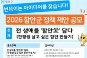 시민행정신문 강갑수 기자 | 함안군은 지역 발전과 현안 해결을 위해 오는 2월 19일부터 3월 18일까지 ‘2026년 함안군 정책 제안 공모’를 실시한다고 13일 밝혔다. 이번 공모전은 다양한 목소리를 정책에 반영하고, 군정에 대하여 군민이 직접 참여할 수 있는 소통의 장을 마련하기 위해 기획됐다. ‘전 생애를 ‘함안愛’ 담다(부제: 한평생 살고 싶은 함안 만들기)’라는 주제로 창의적이고 실현 가능한 정책을 발굴할 예정이다. 공모주제는 △출산·양육 △지역경제·일자리 △생활·교통 △귀농·귀촌 등 4가지 분야다. 공모에는 함안 군정에 관심 있는 국민 누구나 참여할 수 있다. 접수 방법은 국민신문고 또는 함안군청 누리집 ‘고시·공고’에 있는 제안서를 작성해 함안군청 기획예산담당관으로 방문 또는 우편으로 보내거나, 전자우편으로 제출하면 된다. 접수된 제안은 실시 가능성, 창의성, 계속성 등 종합적인 심사를 거쳐 4월 중 결과를 발표한다. 수상자에게는 금상(100만 원), 은상(50만 원), 동상(20만 원), 장려상(10만 원) 총 4개 부문에서 시상금과 군수 표창이