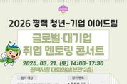 시민행정신문 강갑수 기자 | 평택시는 기업 현직자들의 취업 멘토링을 통해 실질적인 취업 준비를 지원하고 인적 네트워크 형성 기회를 제공하기 위한 '평택 청년-기업 이어드림 ‘글로벌·대기업 취업 멘토링 콘서트’' 참여자를 오는 20일까지 모집한다고 밝혔다. 취업 멘토링 콘서트는 오는 3월 21일 평택시청 대회의실에서 평택 거주 또는 활동 중인 19세부터 39세까지의 구직 청년 100여 명을 대상으로 진행되며, 삼성·SK·LG·나이키·아마존·J&J·KT 등 13개 기업의 현직자들이 취업특강, 직무 토크쇼 질의응답(Q&A), 공개 모의 면접, 그룹 멘토링을 통해 실질적인 취업 정보 및 현실적인 조언과 경험을 제공할 예정이다. 참여 신청은 모집 포스터의 정보무늬(QR코드)를 통해 접수하면 된다. 기타 자세한 사항은 평택시청 누리집을 참고하거나 청년정책과로 문의하면 된다.