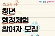시민행정신문 강갑수 기자 | 대구 달서구는 12월 8일부터 12월 17일까지 '2026년 겨울 청년 행정체험' 참여자 40명을 모집한다. 기존 ‘대학생 행정인턴’에서 미취업청년까지 대상 범위를 확대해 개편한 첫 사업이다. 달서구는 내년부터 대학생만 참여 가능했던 기존 인턴제를 '청년 행정체험사업'으로 전면 확대·개편하여 더 많은 청년들이 행정 현장을 경험할 수 있도록 했다. 이 사업은 행정 실무 경험 제공을 통한 취업 경쟁력 강화를 목표로 하며, 특히 스마트 행정·디지털 기반 신사업 등 달서구의 혁신 행정을 실제 현장에서 체험할 수 있는 것이 특징이다. 모집 대상은 공고일 기준 달서구에 주민등록이 되어 있는 19세 이상 34세 이하의 미취업청년 및 대학생이며, 총 40명을 선발한다. 분야별 선발 규모는 ▲ 일반선발 24명 ▲ 우선선발(취약계층) 8명 ▲ 특별선발 8명이다. 지원은 모집 기간 내 달서구청 홈페이지에서 온라인으로 신청하면 되며, 선발은 12월 22일 공개 전산추첨 방식으로 진행된다. 선발된 참여자는 2026년 1월 8일부터 2월 6일까지 달서디지털체
