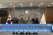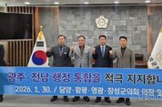 시민행정신문 강갑수 기자 | 담양군의회가 인구 소멸 위기 극복과 지역 경쟁력 강화를 위해 인근 의회와 손을 맞잡고 광주-전남 행정통합 추진에 힘을 보탰다. 담양·함평·영광·장성군 의장단은 ‘광주-전남 행정통합 염원 공동 퍼포먼스’를 펼치며, 행정구역의 경계를 넘어선 초광역 협력 체계 구축에 대한 강력한 의지를 표명했다. 이번 퍼포먼스는 단순한 선언을 넘어, 광주와 전남이 하나의 생활권이자 경제권으로 재편되어야만 수도권 집중화에 대응하고 자생적인 발전 동력을 얻을 수 있다는 절박한 공감대 속에서 마련됐다. 참석한 의장단은 성명을 통해 “행정통합은 지역의 미래 경쟁력 확보와 균형발전을 위해 더 이상 미룰 수 없는 시대적 소명”이라며, “지금이야말로 광주와 전남의 백년대계를 결정할 골든타임”이라고 강조했다. 특히 장명영 의장은 “담양은 광주와 인접한 지리적 이점과 생태문화 자원을 동시에 갖춘 지역으로, 행정통합 시 시너지 효과가 가장 클 것으로 기대되는 곳”이라며, “통합 과정에서 군민의 목소리가 소외되지 않고 실질적인 복지 증진과 지역 발전으로 이어질 수 있도록 정책적 역할을 다하겠다”고 말했다. &n