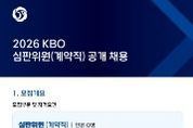 시민행정신문 장규호 기자 | KBO는 퓨처스리그에서 활동할 KBO 심판위원을 공개 채용한다. 이번 채용은 KBO 야구심판 양성과정 수료자(2026년 야구심판 양성과정 수료 예정자 포함) 또는 대한야구소프트볼협회(KBSA) 및 산하단체, 독립리그 소속 심판으로 1년 이상의 심판 활동 경력(단체장 직인 필수) 보유자에 한해서 지원이 가능하다. 최종 합격자는 2026 KBO 공식 심판위원으로 활동하게 되며, 근무 종료 후 평가 결과에 따라 정규직 전환이 검토된다. 채용과 관련된 세부 정보 및 우대 사항은 채용 공고문을 통해 확인 가능하다. 접수 기간은 오늘(2일)부터 23일(월)까지며, KBO 채용 홈페이지(kbo.saramin.co.kr)에서 지원 가능하다.
