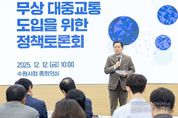 시민행정신문 강갑수 기자 | 수원특례시는 12일 시청 중회의실에서 ‘수원시 무상대중교통 도입 정책토론회’를 열고, ‘수원형 무상대중교통’ 도입 정책 방향을 공유했다. 이날 정책토론회는 주제 발표와 종합토론으로 진행됐다. 김채만 경기연구원 선임연구위원이 ‘미래 대중교통 정책방향-쿠리치바 대중교통 사례’, 김숙희 수원시정연구원 선임연구위원이 ‘수원시 무상대중교통 도입 방향’을 주제로 발표했다. 수원시는 사회초년생 청년과 어르신의 교통비 부담을 덜어주기 위해 내년 1월 1일부터 무상대중교통 지원사업을 시작한다. 지원 대상은 19~23세 청년, 70세 이상 어르신이다(신청일 기준). 19~23세 청년이 K-패스 교통카드로 대중교통을 이용하면 한 달에 최대 2만 3100원(연 27만 7200원)을 환급한다. 어르신은 농협에서 우대 교통카드(G-PASS)를 발급받아 사용하면 실제 사용 금액에 대해 분기별 최대 6만 9300원(연 27만 7200원 한도)를 지원한다. 종합토론에는 아주대학교 오영태 교수, 한국교통연구원 박준식 본부장, 경기대학교 김정화 교수, 경기도 광역교통정책과 윤태완 과장이 참여