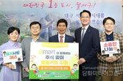 시민행정신문 강갑수 기자 | 대구 달서구(구청장 이태훈)는 대구광역시사회복지협의회와 이마트로부터 추석맞이 명절키트 100세트(약 700만원 상당)를 기탁받았다고 29일 밝혔다. 이번 나눔은 복지 사각지대 해소와 한가위 이웃사랑 실천을 위해 마련됐다. 김석표 회장은 “달서구의 어려운 이웃들이 풍성한 명절을 보낼 수 있도록 작은 힘을 보태고자 했다”며 “앞으로도 이마트와 함께 지속적인 사회공헌 활동을 이어가겠다”고 말했다. 이태훈 달서구청장은 “어려운 여건 속에서도 따뜻한 나눔을 실천해 주신 대구광역시사회복지협의회와 이마트에 감사드린다”며 “소중한 후원품을 필요한 가정에 신속하고 투명하게 전달하겠다”고 전했다.