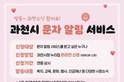 시민행정신문 강갑수 기자 | 과천시는 4월 1일부터 시정 주요 소식을 문자로 제공하는 ‘문자 알림 서비스’를 새롭게 시행한다고 밝혔다. 이번 서비스는 시민들이 필요한 정보를 더욱 쉽고 빠르게 확인할 수 있도록 하기 위한 것이다. 과천시는 기존 누리소통망(SNS) 중심의 정보 제공 방식에 문자 안내를 추가해 별도의 검색 없이 시정 소식을 바로 확인할 수 있도록 했다. 문자로 발송되는 주요 내용은 시의 각종 복지 혜택, 문화, 공연, 축제, 행사, 교육, 긴급 재난 등 시민의 삶의 질을 높일 수 있는 소식들이다. 특히, 문자 메시지 내에 포함된 바로가기 주소(링크)를 클릭하면 상세 정보를 확인할 수 있는 웹페이지 바로 연결돼 정보 접근성 및 편의성을 더했다. 문자 알림 서비스 신청과 해지는 과천시청 누리집에서 상시 가능하다. 과천시 관계자는 “문자 알림 서비스를 통해 시의 다양한 소식을 시민들에게 적시에 제공되도록 소통을 강화해 나가겠다”라고 밝혔다.