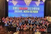시민행정신문 강갑수 기자 | 포항시 평생교육지도자협의회는 21일 더 퀸 갤럭시홀에서 2026년도 정기총회를 개최했다. 이날 총회에는 장상길 포항시 부시장, 이재진 포항시의회 부의장, 시·도의원 등 내빈을 비롯해 협의회 회원 200여 명이 참석한 가운데 지난해 성과를 격려하고, 새로운 각오를 다지는 자리를 가졌다. 협의회 홍보 영상을 시작으로 인사말, 축사, 표창패 및 감사패 수여 순으로 진행된 이날 총회의 마지막에는 장상길 부시장이 2026년 포항시 사자성어 ‘위민충정(爲民忠情)’이라는 구호를 선창하고 200여 명의 협의회 회원들 ‘포항’을 외치며 결의를 다지는 퍼포먼스를 펼쳐 눈길을 끌었다. 김용재 포항시 평생교육지도자협의회 회장은 “지난해 포항에서 진행된 경상북도 평생학습박람회의 성공적인 개최를 지원하고, 찾아가는 동네경로당대학 등 사업을 통해 많은 보람을 느꼈다”며, “올해도 마을평생교육 활성화에 더욱 노력하겠다”고 말했다. 장상길 포항시 부시장은 “올해도 평생교육지도자협의회와 민관 협력을 더욱 강화하고, 모든 시민이 평생학습을 통해 삶의 행복을 실현하는 포항을 만들어 나가자”는 격려사를 전