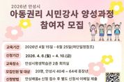 시민행정신문 강갑수 기자 | 안성시는 아동친화도시로서 아동권리 인식 확산과 시민강사 양성을 위해 '아동권리 시민강사 양성과정' 참여자를 모집한다. 이번 과정은 아동권리에 대한 지역사회 인식을 확산하고, 관련 교육을 수행할 시민강사를 양성함과 동시에 중장년층의 사회참여 기회를 확대하기 위해 마련됐다. 교육은 2026년 4월 15일부터 6월 25일까지 운영되며, 총 11회차에 걸쳐 집합교육과 자율학습을 병행하여 진행된다. 모집 대상은 안성시에 거주하는 40세부터 64세까지의 중장년 시민 20명이다. 교육신청은 4월 6일부터 10일까지 안성시평생교육통합플랫폼(안성배움e)를 통해 접수한 후, 별도의 신청서를 이메일로 제출하면 된다. 교육대상자는 신청서를 바탕으로 참여 의지와 지원동기 등을 종합적으로 평가해 선발할 예정이다. 교육과정은 ▲아동권리 및 인권 기초 이해 ▲유엔아동권리협약의 이해 ▲긍정적 훈육 ▲아동인권 교육 프로그램 설계 등 이론과 실습을 병행하는 체계적인 내용으로 구성된다. 수료자는 민간자격인 ‘아동인권옹호전문가 2급’ 자격시험에 응시할 수 있으며, 향후 관내 초·중학