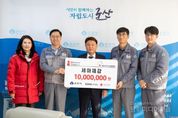 시민행정신문 강갑수 기자 | ㈜세아제강이 1일 동절기 동절기 취약계층을 위한 이웃돕기 성금 1,000만 원을 군산시에 기탁했다. 기탁식에 참석한 박춘섭 군산공장장은 “올해도 우리 임직원들이 주변의 어려운 이웃을 위해 나눔의 가치를 실천할 수 있어 뜻깊다.”라며 “세아제강은 앞으로도 지역사회와 함께하기 위해 지속적으로 나눔 활동을 이어가겠다.”라고 말했다. 강임준 군산시장은 “기탁해 주신 성금은 혹한기 어려움을 겪는 가정에 큰 도움이 될 것.”이라며 “꾸준히 지역을 위해 나눔을 실천해 주시는 세아제강 임직원분들께 깊이 감사드린다.”라고 전했다. 이번에 기탁된 성금은 관내 저소득 난방취약계층의 따뜻한 겨울나기를 위한 연탄 지원비로 사용될 예정이다. 한편 ㈜세아제강은 지난 11월 23일, 임직원·가족 50여 명이 참여하여 옥구읍과 조촌동 일대 10가구에 연탄나눔 봉사활동을 진행했으며, 난방취약계층 가정에 연탄을 직접 배달해 따뜻한 온기를 전하기도 했다.