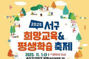 시민행정신문 강갑수 기자 | 부산 서구는 오는 11월 1일 송도오션파크에서 서부교육지원청과 공동으로 '2025년 서구 희망교육 & 평생학습 축제'를 개최한다. 이번 축제는 ‘아이부터 어른까지, 함께 배우고 나누는 즐거운 하루’를 주제로 오전 11시부터 오후 4시까지 다채로운 프로그램이 펼쳐질 예정이다. 대신여자중학교의 신나는 밴드 공연을 시작으로, 관내 7개 학교, 10개 학생 동아리, 12개 평생학습 동아리가 참여해 열띤 무대를 선보인다. 또한 38개의 특색 있는 체험부스, 온가족 플리마켓, 희망교육 & 평생학습 작품 전시회 등 풍성한 볼거리와 즐길거리로 가득할 예정이다. 특히 오는 11월 22일 개관 예정인 서구아미드림도서관 홍보‧체험부스도 운영되어 구민들이 서구의 첫 구립도서관을 미리 만나볼 수 있다. 공한수 서구청장은 “희망교육과 평생학습이 어우러지는 이번 축제를 통해 지역 주민들이 함께 배우고 소통하며 성장하는 계기가 되길 바란다”고 말했다.