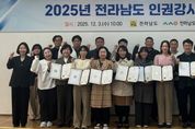 시민행정신문 강갑수 기자 | 전라남도는 3일 도민 인권교육을 통해 생활 속 인권 존중문화 확산에 앞장설 신규 인권강사 15명을 위촉했다. 전남도는 매년 도민의 인권 의식 제고와 인권교육 수요 증가에 대응하기 위해 인권강사 양성 프로그램을 운영하고 있다. 올해는 전남사회서비스원에 위탁해 과정의 전문성을 강화했다. 이번 교육 과정은 ▲이론 교육 36시간 ▲강의기법 교육 18시간 등 총 54시간으로 구성해 인권에 대한 전문성과 교육 실무 역량을 동시에 높이는 데 중점을 뒀다. 위촉식에서는 권영철 인권강사가 ‘인권의 가치를 수호하는 사람들’을 주제로 강연해 인권 교육의 중요성과 실천 의지를 강조했다. 위촉된 인권강사는 앞으로 공공기관, 학교, 민간단체 등을 찾아가 맞춤형 인권 교육을 하고, 일상 속 차별 예방과 존중 문화를 확산하는 생활 밀착형 인권 실천 활동을 펼친다. 심재명 전남도 자치행정과장은 “인권은 법과 제도만으로는 실현될 수 없으며 교육과 실천이 함께해야 한다”면서 “인권강사가 도민 곁에서 인권의 가치를 일깨우고, 누구나 존중받는 전남을 만드는데 핵심 역할을 해주길 바란다”고 말했다.