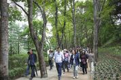 시민행정신문 이존영 기자 | 서울 서초구는 10월 14일, 도심 속 힐링 명소인 ‘길마중 초록숲길’에서 지역주민들과 함께하는 건강걷기 행사를 개최했다고 밝혔다. 행사는 시원한 가을 바람 속 올해 새단장된 길마중 초록숲길 2단계 구간(서초IC~서초1교)과 3단계 구간 일부(서초1교~명달공원)을 주민들과 함께 걸으며 힐링과 행복을 함께 나누는 시간으로 진행됐다. 시작에 앞서 구는 길마중 초록숲길 2단계 조성 과정과 주요 개선 내용을 주민들과 공유하며 새단장의 의미를 되새겼다. 이어 웰니스 연구소 소장을 맡고 있는 김응석 강사와 함께 간단한 레크리에이션과 스트레칭으로 몸을 푼 뒤, 올바른 걷기 자세를 배우며 본격적인 행사가 시작됐다. 전성수 서초구청장도 직접 참여해 주민들과 나란히 걸으며 소통의 시간을 가졌다. 전 구청장은 “숲길을 걸으며 건강과 힐링, 행복까지 누릴 수 있도록 ‘길마중 초록숲길’을 새롭게 단장했다”며 “용허리근린공원 인근에는 황토체험장과 서초에서 규모가 가장 큰 맨발체험 공간도 있으니, 오늘 직접 걸으며 얼마나 좋은지 느껴보시길 바란다”고 말했다. 주민들은 새단장한 숲길을 걷고, 맨발길