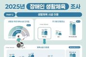 시민행정신문 이존영 기자 | 문화체육관광부는 대한장애인체육회와 함께 전국 등록 장애인 1만 명(만 10세~69세)을 대상으로 진행한 ‘2025년 장애인 생활체육조사(2024년 9월~2025년 8월 기준)’ 결과를 발표했다. 장애인 생활체육 참여율은 주 2회 이상(1회당 30분 이상) 집 밖에서 운동하는 장애인 생활체육 완전 실행자 비율이다. 2025년도 장애인 생활체육 참여율은 34.8%로 조사돼 전년 대비 0.4%포인트(p) 소폭 감소했다. 주로 이용하는 운동 장소에 대해서 ‘체육시설’을 이용한다는 응답은 18.2%, ‘집안’에서 운동한다는 응답은 9.4%, ‘야외/등산로/공원 등 근처 야외’를 이용한다는 응답은 45.4%를 차지했다. 체육시설을 이용한 응답자를 대상으로 이유를 조사한 결과, ‘거리가 가까워서’라는 응답이 38.2%로 가장 많았고, 다음으로 ‘시설이용료가 무료 또는 저렴해서’ 22.8%, ‘전문적인 체육시설이 있어서’ 17.5% 순으로 조사됐다. 체육시설을 이용하지 않는 응답자를 대상으로 이유를 조사한 결과는 ‘혼자 운동하기 어려워서’라는 응답이 26.8%로 가장 많았고, 다음으로 ‘체육시설과