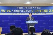 시민행정신문 이준석 기자 | 주철현 더불어민주당 국회의원(전남 여수시갑)은 7일 오후 2시 30분, 전남도의회 브리핑룸에서 기자회견을 열고, 광주·전남 행정통합에 대한 적극적인 환영 입장과 함께 통합의 방향에 대한 의견과 비전을 밝혔다. 주 의원은 이날 기자회견에서 “광주·전남 행정통합은 인구감소와 지방소멸이라는 위기를 극복하고, 수도권 일극 체제를 넘어 대한민국 어디서나 살기 좋은 지방시대를 여는 시대적 소명”이라며 “이 역사적인 여정에 누구보다 앞장서겠다”고 강조했다. 특히 주 의원은 이재명 정부의 ‘5극 3특’ 지역균형발전 전략을 언급하며, “광주·전남이 하나의 메가시티로 도약하는 것은 단순한 행정구역 개편을 넘어 공정 성장과 국가 균형발전의 토대를 만드는 일”이라며 “광주·전남 통합이 이재명 정부 국정철학의 핵심 성공 모델이 되도록 모든 역량을 쏟겠다”고 밝혔다. 이어 주 의원은 행정통합의 최종 완성은 주민투표를 통한 국민주권 실천이어야 한다고 분명히 했다. 아울러 “행정통합은 시·도민의 삶의 궤적을 바꾸는 중대한 사안으로, 헌법 제1조가 명시한 국민주권 원칙에 따라 통합의 결정권자는 국민”이라며 “주민
