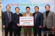 시민행정신문 강갑수 기자 | 고성군은 고성제일교회(담임목사 김종철)가 12월 11일 고성군청을 방문하여 지난달 8일 개최한 ‘제14회 사랑과 나눔 바자회’를 통해 조성한 수익금 500만 원을 관내 저소득층 지원을 위해 기탁했다. 고성제일교회는 매년 지역사회의 소외된 이웃을 돕기 위한 바자회를 개최하고 있으며, 올해로 14회를 맞은 ‘사랑과 나눔 바자회’는 교인과 지역주민 모두가 함께 참여해 따뜻한 나눔의 정을 실천하는 뜻깊은 행사로 자리매김하고 있다. 김종철 고성제일교회 담임목사는 “한마음으로 참여한 바자회를 통해 뜻깊은 나눔을 실천할 수 있어 감사하다”라며, “앞으로도 이웃에게 희망이 되고 지역사회에 온정을 전할 수 있도록 지속적으로 노력하겠다”라고 전했다. 이날 기탁된 성금은 경남사회복지공동모금회를 통해 관내 저소득층을 위해 소중히 사용될 예정이다.