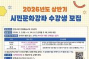 시민행정신문 기자 | 광주시교육청금호평생교육관은 오는 3~6월 ‘2026년 상반기 시민문화강좌’를 운영한다. 이번 시민문화강좌는 시민의 학습 수요를 반영한 배움의 장을 제공하고 지역 내 평생학습 문화를 확산하기 위해 마련됐다. 강좌는 ▲스마트폰 활용 ▲영어회화 ▲컴퓨터 기초 등 인문교양 11개, ▲바이올린 ▲줌바댄스 ▲요가 ▲프랑스자수 등 문화예술 19개 등 2개 분야 30개로 구성됐다. 운영 일정은 오는 3월 3일부터 6월 24일까지 주 1회 2시간씩 총 16회에 걸쳐 본관 평생학습실에서 진행된다. 수강신청은 시민 누구나 가능하며, 선착순으로 접수받는다. 수강료는 강좌당 5만 원이다. 단, 장애인 등 수강료 감면대상자는 증빙서류 제출 시 1인 1강좌에 한해 감면 혜택을 받을 수 있다. 온라인 접수는 10~13일 금호평생교육관 누리집에서 가능하며, 방문접수는 오는 24~28일 금호평생교육관 운영과에서 하면 된다. 자세한 내용은 금호평생교육관 누리집 또는 운영과에서 확인하면 된다. 금호평생교육관 정운용 관장은 “시민들이 학습 욕구를 충족하고, 관심사를 넓히는 계