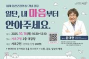 시민행정신문 이존영 기자 | 서울 서초구는 세계 정신건강의 날(10.10.)을 맞아 오는 16일 서초구청 대강당과 보건소 앞마당에서 정신건강 문제에 대한 구민의 인식을 제고하기 위해 ‘2025년 정신건강의 날 기념행사’를 개최한다고 밝혔다. 이번 행사는 ‘일단, 내 마음부터 안아주세요’라는 주제로, 구민들이 일상 속에서 자신과 타인의 마음 건강을 살피며 더불어 살아갈 수 있도록 돕는 데 중점을 두고 진행될 예정이다. 행사는 감성 인디밴드 ‘오아밴드’의 공연을 시작으로 문을 연다. 이어 오전 10시 30분부터는 서초구청 2층 대강당에서 정신건강 전문가 특강이 진행된다. 강연은 서울대학교병원 강남센터 정신건강의학과 교수이자 정부 정신건강정책 혁신위원회 위원으로 활동 중인 윤대현 교수가 맡는다. 윤 교수는 ‘현대인의 무기력과 우울’을 주제로, 급변하는 사회 속에서 많은 사람들이 겪고 있는 정서적 어려움을 짚어보고 이를 효과적으로 극복할 수 있는 방법을 제시할 예정이다. 이번 강연은 행사 주제인 ‘일단, 내 마음부터 안아주세요’와 연계해 구민들이 감정을 다스리는 지혜를 얻는 뜻깊은 시간이 될 것으로 기대된다. 같은 날 오전 10