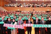 시민행정신문 강갑수 기자 | 대전시는 12일 시청 대강당에서 대전광역시의회, 대전충남 행정통합 민관협의체(이하 민관협)와 공동으로 “대전충남 행정통합 설명회 및 시민 한마음 촉구대회”를 개최하고, 대전충남 행정통합 특별법안의 조속한 국회 심의․의결을 촉구했다. 이날 행사는 최근 대통령이 행정통합의 필요성을 공식 언급하면서 통합 논의가 새로운 전기를 맞은 가운데 마련됐으며, 약 600명의 시민이 참석해 추진상황을 공유하고 통합 의지를 결집했다. 이창기 민관협 공동위원장은 지난 10월 2일 특별법안 발의 이후 경과를 소개하며, 통합으로 기대되는 효과를 설명했다. 이 공동위원장은 통합 시 인구 360만 규모의 초광역 혁신 클러스터 형성, 광역교통․생활권 확장 등 실질적인 변화를 강조하며 “행정통합은 수도권 일극체제에 대응할 충청권의 경쟁력 확보 전략”이라고 밝혔다. 설명회 후에는 통합을 촉구하는 퍼포먼스가 진행됐다. 이장우 대전시장, 조원휘 대전시의회의장, 이창기 민관협 공동위원장, 남재동 대전사랑시민협의회장이 관객석에서 행정통합을 촉구하는 구호를 선창하고 시민이 후창하는 카드섹션을 펼쳤으며, 이어 무대