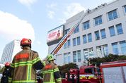시민행정신문 강갑수 기자 | 대전시는 23일 오후 3시 시청사 일원에서 둔산소방서와 합동으로 고층건물 화재 대응을 위한 합동훈련을 실시했다. 이번 훈련은 최근 잇따른 고층건물 화재사고에 따라 화재 초기 대응능력 향상과 안전한 대피체계 확립을 위해 마련된 것으로, 전 직원과 자위소방대원 및 둔산소방서 현장대응단 등 총 2,000여 명이 참여해 실제 상황을 방불케 했다. 훈련은 본청 4층 대강당에서 화재가 발생한 상황을 가정하여 ▲화재신고 및 상황전파 ▲초기진화 및 대피유도 ▲부상자 구조 및 환자이송 ▲소방서 출동 후 본격 화재 진압 및 인명구조 순으로 진행됐다. 또한 소방펌프차, 고가사다리차, 구급차 등 8대의 장비가 투입되어 실전과 같은 훈련 환경 속에서 인명 보호와 대응 절차를 점검했다. 올해부터는 실제 화재 시 보다 신속하고 체계적으로 대응할 수 있도록 자위소방대원 인원을 각층별로 8명씩 추가 지정·편성하여 운영하고 있다. 자위소방대는 화재 발생과 동시에 현장으로 출동하여 옥내소화전과 소화기를 활용해 초기진화를 시도하고, 직원들이 비상계단을 이용해 신속히 안전한 장소로 대피하도록 유