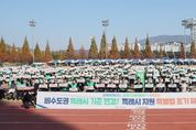 시민행정신문 강갑수 기자 | 창원특례시는 14일 창원스포츠파크 보조경기장에서 열린 2025 창원시 새마을지도자 한마음대회에서 약 2,000여 명이 참석한 가운데 ‘시민 공감 릴레이 캠페인’의 세 번째이자 마지막 퍼포먼스를 성황리에 진행했다고 밝혔다. 이번 퍼포먼스는 창원특례시가 직면한 특례시 지위 불안정 문제와 실질적인 권한 부족 문제를 시민과 함께 공유하고, 비수도권 유일의 특례시로서 특례시 기준 변경과 특례시 지원 특별법 조기 제정의 필요성을 널리 알리기 위해 마련된 ‘시민 공감 릴레이 캠페인’의 마지막 순서다. 이날 현장에서는 두 대의 드론이 상공으로 동시 이륙해 ‘비수도권 특례시 기준 변경’, ‘특례시 지원 특별법 조기 제정’ 문구가 적힌 대형 현수막을 펼치며 창원시의 염원을 하늘 위에 선명하게 드러냈다. 이어 참석자들은 글자모형과 손피켓을 일제히 들어 올리며 특례시 지위사수와 특별법 제정을 향한 시민들의 의지를 강하게 표출했다. 또한, 사회자의 “비수도권 특례시 기준변경”, “특례시 지원 특별법 조기제정” 선창에 맞춰 참석자 전원은 힘차게 “할 수 있다!”를 외치며 현장의 분위기를 더욱