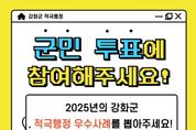 시민행정신문 강갑수 기자 | 강화군은 오는 10월 27일부터 10월 31일까지 5일간 강화군 홈페이지를 통해 ‘2025년 강화군 적극행정 우수사례 군민 투표’를 실시한다고 밝혔다. 이번 투표는 행정에 대한 군민의 체감도와 참여를 높이기 위해 마련된 것으로, 강화군 각 부서에서 제출한 18건의 적극행정 우수사례 중 1차 심사를 통해 선정된 8건을 대상으로 군민이 직접 우수사례를 선택할 수 있다. 투표는 강화군청 홈페이지 ‘적극행정 우수사례 투표’ 배너를 통해 간편하게 참여할 수 있으며, 투표 결과는 군 내부 심사 점수와 합산하여 ‘적극행정 우수사례 및 우수공무원’ 선정에 반영될 예정이다. 강화군은 이번 군민 투표를 통해 현장 중심의 적극행정 성과를 널리 공유하고, 공직자의 적극적인 업무 추진 문화를 확산시켜 나간다는 방침이다. 박용철 군수는 “군민이 체감할 수 있는 적극 행정은 진정한 소통의 출발점”이라며 “앞으로도 창의적이고 능동적인 공직문화가 정착될 수 있도록 적극행정을 지속적으로 추진하겠다”고 밝혔다.