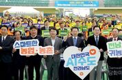 시민행정신문 강갑수 기자 | 전라남도는 14일 완도 청해진스포츠센터에서 ‘2025년 귀농어귀촌인 어울림대회’를 열어 귀농·귀촌인의 도전을 응원하고 지역 발전을 염원하는 화합과 교류의 장을 마련했다. 전남귀농어귀촌인연합회가 주관한 이번 행사는 ‘새로운 시작, 함께 만드는 전남의 미래’를 주제로 열려 전남 귀농·귀촌인과 가족, 관계 공무원 등 600여 명이 참석했다. 행사는 식전 색소폰과 가야금 공연으로 문을 열었다. 개회식은 김영록 전남도지사와 신우철 완도군수, 김양훈 완도군의회 의장, 신의준 전남도의회 의원, 귀농어귀촌인연합회 관계자 등이 참석한 가운데 우수 귀농어귀촌인 도지사표창, 퍼포먼스, 기념촬영 순으로 이어졌다. 시상식에서는 김지혜 여수시 귀농어귀촌협회 사무국장 등 5명에게 도지사 표창을, 이성상 완도군 귀농어귀촌협회장 등 6명에게 전국 및 도 연합회장 공로패가 각각 수여됐다. 특히 귀농어귀촌인의 도전과 전남도의 발전을 함께 염원하는 의미로, 주요 내빈이 무대에 올라 ‘농업·농촌의 희망’, ‘전남 귀농어귀촌인’, ‘OK, NOW 대한민국 AI 수도’라는 문구가 적힌 세 개의 박을