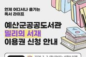 시민행정신문 강갑수 기자 | 예산군 공공도서관은 지역주민의 디지털 독서 접근성을 높이고 생활 속 독서문화 확산을 위해 ‘구독형 전자책 지원 사업’을 운영한다. 최근 디지털 콘텐츠 이용이 늘면서 시간과 장소 제약 없이 독서를 즐길 수 있는 비대면 독서 서비스 수요가 증가하고 있으며, 이에 군은 전자책 이용 기회를 확대하고 함께 읽고 나누는 독서공동체 문화를 확산하기 위해 이번 사업을 마련했다. 사업은 3월부터 12월까지 운영되며, 군 공공도서관 정회원(도서관 카드 발급 회원)을 대상으로 구독형 전자책 서비스 이용권을 차수별로 배부한다. 이용자는 PC와 모바일 기기를 통해 최신 베스트셀러와 자기계발서, 아동·청소년 도서, 오디오북 등 다양한 콘텐츠를 언제 어디서나 이용할 수 있다. 이용권은 차수별 선착순 50명에게 배부하며, 1인당 1매로 3개월간 사용이 가능하다. 1차 접수는 3월 3일 오전 9시부터 시작하며 도서관 누리집 행사참가신청 메뉴에서 신청하면 된다. 군 관계자는 “구독형 전자책 서비스를 통해 주민 누구나 부담 없이 독서를 접하는 계기가 되길 바란다”며 “앞으로도 전