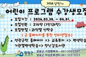 시민행정신문 강갑수 기자 | 영광군은 어린이의 건강한 성장과 다양한 문화·예술 체험 기회를 제공하기 위해 오는 3월 30일부터 4월 1일까지 2026년 상반기 어린이 프로그램 수강생을 모집한다고 밝혔다. 이번 프로그램은 9세 이하 아동을 대상으로 신체활동과 예술, 정서발달을 돕는 다양한 체험형 교육으로 구성되어 ▲베이베붐 ▲트니트니 ▲튼튼쑥쑥 키즈요가 ▲키즈발레 ▲감성동화구연 ▲키즈드럼 ▲사물악기 체험놀이 ▲우리노래 우리놀이 ▲발표력동화구연 등 총 9개 분야 18개 강좌로 운영될 예정이다. 특히 신체활동 중심 프로그램부터 음악·놀이·동화구연 등 감성 발달을 돕는 프로그램을 다양하게 마련해 아이들의 신체 발달과 창의력, 표현력 향상에 도움을 줄 것으로 기대된다. 모집인원은 총214명이며, 강좌별로 소규모 인원을 운영해 보다 집중도 높은 교육 환경을 제공할 계획이다. 수강 신청은 선착순으로 진행되며 1인 1과정 신청이 가능하고 교육장소는 여성문화센터와 홍농읍복지회관 4층에서 제공할 계획이다. 수강신청은 영광군에 주소를 두고 거주하는 아동이면 누구나 가능하고, 영광군 홈페이지를 통해 온라인으