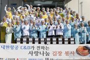 시민행정신문 강갑수 기자 | 서울 강서구는 12일 대한항공씨앤디서비스(주)(대표이사 최덕진)로부터 김장김치 10kg 220박스를 전달받았다. 전달식은 대한항공씨앤디서비스 김포공항 기내식센터에서 열렸다. 진교훈 구청장, 최덕진 대표이사와 임직원 등 60여 명이 함께했다. 이날 행사에서 대한항공씨앤디서비스 임직원들은 김장김치를 버무리고 포장까지 직접 했다. 진교훈 구청장도 위생복, 위생 모자 등을 갖춰 입고 일손을 더했다. 참여자들이 손수 담근 김장김치는 총 2.2톤으로 발산1동, 방화1·2동, 공항동 취약계층 220세대에 10kg씩 전달될 예정이다. 금액으로 환산하면 2천 1백만 원에 달한다. 진교훈 구청장은 “김장나눔으로 지역사회에 온기를 더해 주신 대한항공씨앤디서비스에 깊이 감사드린다”며 “구에서도 한층 더 촘촘한 복지망을 구축해 복지사각지대 없는 따뜻한 강서를 만들어 나가겠다”고 말했다. 대한항공씨앤디서비스는 기내식 생산부터 기내면세품 판매까지 두루 맡고 있는 기내서비스 전문업체다.