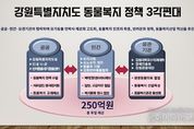 시민행정신문 강갑수 기자 | 강원특별자치도는 2월 20일 오후 2시 강릉에 위치한 도 반려동물지원센터에서 ‘강원형 동물복지 정책’을 발표하고, 복지‧의료‧산업‧관광을 아우르는 4대 전략을 본격 추진한다고 밝혔다. - 이번 정책은 반려동물 양육이 일상화된 사회 변화에 대응해 공공의 역할을 강화하기 위해 마련됐다. 현재 전국 반려 가구는 591만 가구로 전체 가구의 25% 이상을 차지하고 있으며, 반려동물(개‧고양이)은 약 800만 마리 수준으로 추산된다. - 이 자리에는 김진태 도지사를 비롯해 강원경제진흥원, 강원관광재단, 도수의사회장, 강원대 수의과대학장, 군견훈련소 교관, 강릉 주민, 강릉동물보호센터장 등 각계 전문가와 현장 관계자들이 참석했다. 참석자들은 정책 방향을 공유하고 반려동물지원센터 공간 확대 필요성, 입양 이후 보호자와 유기견을 위한 교육‧관리 지원 강화 방안 등 다양한 의견이 논의됐다. 김진태 지사는 “동물복지를 하나의 정책 아젠다로 삼아 보다 체계적으로 추진하려고 한다”며, “이를 위해 각 기관과 전문가들의 협력이 반드시 필요하다”고 밝혔다. 이어 “이곳
