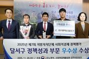 시민행정신문 강갑수 기자 | 대구 달서구는 고용노동부와 사회적경제활성화네트워크가 공동 주최한 ‘2025년 지방자치단체 사회적경제 정책평가’에서 정책성과 부문 우수 자치단체로 선정됐다고 밝혔다. 이번 수상은 대구 지역 기초자치단체 중 유일한 성과다. 달서구는 지난 7월 ‘사회적기업 육성 우수 자치단체’에 이어 또다시 우수기관으로 선정되며, 올해 실시된 사회적경제 관련 모든 평가에서 우수 등급을 받은 2관왕의 쾌거를 이뤘다. 이번 평가는 사회적경제의 현재를 진단하고 향후 발전 방향을 모색하기 위해 실시됐으며, ▲ 정책기반 정비, ▲ 지원 수준, ▲ 정책성과, ▲ 거버넌스 수준 등 4개 분야, 17개 지표를 기준으로 전국 광역 및 기초자치단체 가운데 총 11개 기관이 우수 자치단체로 선정됐다. 달서구는 사회적경제 연도별 활성화 계획 수립 등 정책기반 정비, 찾아가는 사회적경제 마켓·사업개발비 지원 등 다양한 현장형 지원 정책, 중앙부처 연계 기업지원 통합설명회 개최, 한국사회적기업진흥원과의 SVI 교육 연계 등 거버넌스 협력 강화 등 모든 분야에서 고르게 높은 평가를 받았다. 특히, 달서구는 대구 기초자