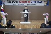 시민행정신문 강갑수 기자 | 서산소방서는 7일 소방서 대회의실 및 차고에서 ‘제63주년 소방의 날’ 기념행사를 개최했다고 밝혔다. ‘소방의 날’은 매년 11월 9일로 지정된 법정 기념일로, 화재 예방과 안전의식을 높이고 국민의 생명과 재산을 보호하기 위한 취지로 제정됐다. 이날 행사에는 소방공무원, 의용소방대원, 소방행정발전위원 등 100여명이 참석해 자리를 빛냈다. 1부 행사에서는 기념사와 유공자 표창이 진행됐고 장관상·청장상·도지사상·서장상 등 총41명의 소방공무원 및 민간 유공자가 표창을 받았다. 이어진 2부에서는 케이크 절단식과 오찬을 통해 소방 가족 간의 화합과 소통의 시간을 가졌다. 최장일 서산소방서장은 “오늘의 소방이 있기까지 헌신해주신 모든 소방가족과 시민 여러분께 감사드린다”며 “앞으로도 시민이 안심할 수 있는 안전한 서산 구현을 위해 최선을 다하겠다“고 말했다.