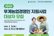 시민행정신문 이세훈 기자 | 금산군은 농업의 미래를 이끌 전문 농업인을 육성하기 위해 2026년도 후계농업경영인 신청을 오는 2월 11일까지 접수한다. 지원 대상은 사업 시행연도 기준 18세 이상 49세 이하(1976~2008년 출생자)로 영농에 종사한 경력이 없거나 영농경력 10년 미만인 농업인이다. 후계농업경영인으로 선정될 경우 후계농업경영인 육성자금을 통해 세대당 최대 5억 원의 정책자금을 지원받을 수 있다. 해당 자금은 연 1.5%의 저금리에 5년 거치 후 20년간 원금 균등분할 상환 조건으로 제공된다. 단, 육성자금은 후계농업경영인으로 선정된 이후 상하반기에 별도로 실시되는 자금 배정 평가를 통해 최종 선정된 경우에만 지원되며 영농계획의 타당성과 경영 능력 등을 종합적으로 평가한다. 신청은 농림사업정보시스템 ‘농업e지’ 누리집을 통해 온라인으로 하면 하며 영농계획서 등 관련 서류를 기한 내 제출해야 한다. 금산군 후계농업경영인 신청에 관한 자세한 내용은 금산군청 농정과 농정유통팀에 문의하면 된다. 군 관계자는 “후계농업경영인 육성사업은 청년 및 후계 농