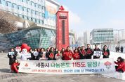 시민행정신문 강갑수 기자 | 세종특별자치시 희망2026나눔캠페인이 세종시민의 뜨거운 사랑을 받고 62일간 대장정을 마쳤다. 세종사회복지공동모금회(회장 박상혁)는 2월 2일 11시 30분 세종시청 앞 사랑의온도탑 앞에서 박상혁 회장, 김려수 세종시 보건복지국장, 민경희 세종 사랑의열매 나눔봉사단장 등 30여명이 참석한 가운데 ‘희망2026나눔캠페인 세종나눔온도 115.8도 달성 기념 및 폐막식’을 가졌다. 이번 희망2026나눔캠페인은 모금 목표액 20억 4천만원을 목표로, 지난 2025년 12월 1일부터 2026년 1월 31일까지 총 62일간 “행복을 더하는 기부! 기부로 바꾸는 세종”란 슬로건으로 캠페인을 전개했으며, 20억 4천만원 목표 대비 23억6천여만원을 모금하여 사랑의온도 115.8도를 달성했다. 특히 경기가 어려운 상황에서 세종시민들이 십시일반 성금을 모아 사랑의온도탑 100도를 달성하는데 큰 힘이 됐다. 박상혁 세종사회복지공동모금회 회장은“어려운 경기 속에서도 십시일반 소중한 성금을 모아 참여해주신 시민 여러분과 기업, 단체 대표님들께 진심으로 감사드린다 ”며 “소중하게 모아주신 성금