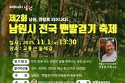 시민행정신문 강갑수 기자 | 제2회 남원시 전국 맨발걷기 축제, 11월 1일 교룡산 둘레길에서 개최 남원시가 주최하고 맨발걷기국민운동본부 남원지회가 주관하는 ‘제2회 남원시 전국 맨발걷기 축제’가 오는 11월 1일 오후 1시 30분, 교룡산 둘레길 일원에서 열린다. 이번 행사는 남원시와 맨발걷기국민운동본부가 공동으로 주최하며, 전국 각지에서 참가자들이 모여 건강과 힐링, 그리고 문화를 함께 나누는 걷기 축제의 장이 될 전망이다. 참가자들은 황톳길과 소나무 숲길, 역사 탐방로를 따라 걸으며 단순한 걷기를 넘어 마음의 평안과 자연 치유의 시간을 갖게 된다. 또한 교룡산성의 역사적 의미를 배우고 지역 문화의 아름다움을 체험할 수 있는 다양한 프로그램도 마련된다. 행사 당일에는 축하공연, 맨발걷기 특강, 치유 사례 발표, 맨발 산행 등이 이어지며, 선착순 500명에게는 생수와 떡, 접이식 배낭 등이 제공된다. 이번 맨발걷기 코스에는 기존 교룡산 임도와 등산로 노선을 활용하여 남원시가 총 사업비 25억원을 들여 지난 4월 착공 후 6개월 만에 완공한 코스로, 1.1km의 황톳길과 1