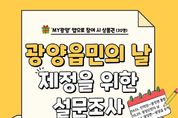 시민행정신문 강갑수 기자 | 광양읍민의 날 제정 추진위원회는 ‘광양읍민의 날’ 제정을 위해 오는 3월 17일부터 4월 12일까지 광양읍 주민을 대상으로 설문조사를 실시한다고 밝혔다. 이번 설문조사는 지역의 정체성을 강화하고 읍민 화합과 자긍심을 높이기 위한 ‘광양읍민의 날’ 제정을 추진하는 과정에서 많은 광양읍민들이 공감할 수 있는 의미 있는 날을 정하기 위해 주민 의견을 수렴하고자 마련됐다. 추진위원회는 지난 3월 6일 제1차 회의를 열어 광양읍민의 날 제정 필요성과 후보 일자에 대해 논의했으며, 주민 의견을 반영해 기념일을 정하기 위해 설문조사를 진행하기로 했다. 설문은 ▲읍민의 날 제정에 대한 찬성 여부 ▲기념일 선호 일자 등 총 2개 문항으로 구성됐다. 기념일 후보는 ▲4월 1일(인덕면, 광양면 통합일) ▲5월 25일(광양군민의 날 시행일) ▲8월 14일(광양군에서 광양읍 승격일) 등 3개 날짜 중 선택하는 방식이다. 설문조사는 모바일 앱 ‘MY광양’을 통해 참여할 수 있으며, 홍보물에 안내된 QR 코드를 이용해 앱을 내려받은 뒤 설문에 참여하면 된다. 앱을 통해