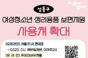 시민행정신문 강갑수 기자 | 서울 성동구 '여성청소년 생리용품 보편지원' 사업 바우처 전용 온라인 쇼핑몰에 12월부터 유한킴벌리, 깨끗한나라, LG생활건강 등 20여 개의 브랜드가 추가 입점했다. 그동안 바우처 이용자들은 서울시 내 주요 편의점(GS25, CU 등)에서만 생리용품을 구매할 수 있었다. 하지만 올해 7월 전용 온라인 쇼핑몰이 개설되면서 접근성이 크게 개선됐고, 현재 면생리대 전문 제조업체 1곳이 입점해 있다. 이어 올해 12월부터는 선호도가 높은 주요 브랜드들이 추가되어 다양한 제품들을 더욱 편리하게 비교·선택해 구매할 수 있게 됐다. 성동구는 2022년부터 서울시 자치구 최초로 생리용품 보편지원 사업을 시행해 왔다. 기존 저소득층 선별지원 방식의 한계를 넘어, 복지 사각지대 해소와 여성 청소년의 기본권 보장에 앞장서고 있다. 2025년 10월 기준 약 4,300명의 여성 청소년들이 해당 지원을 통해 건강권을 지키고 있다. 지원 대상은 성동구에 주소를 둔 11세~18세(2026년 기준 2008년~2015년생) 여성 청소년이다. 성동구청 누리집(홈페이지) 또는 주소지 동 주민센터에서 신