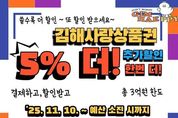 시민행정신문 이세훈 기자 | 김해시는 오는 10일부터 김해사랑상품권 결제금액의 5%를 김해사랑상품권으로 환급(캐시백)하는 추가 할인 행사를 추진한다고 6일 밝혔다. 지역사랑상품권 국비지원 발행분 판매실적 우수 지자체로 선정돼 추가 인센티브를 교부받아 이뤄지는 행사이다. 추가 인센티브는 1차 정부 추경예산 지원을 받아 발행한 지역사랑상품권 8월 말 기준 판매실적 평가 결과에 따른 것으로, 총 300억 원 규모로 전국 33개 지자체가 선정됐으며 경남에서 김해시가 유일하다. 추가 할인은 김해사랑상품권뿐 아니라 김해공공배달앱상품권, 김해온몰상품권 결제금액에도 동일하게 적용된다. 이번 행사는 3억 원 규모로 예산 소진 전까지 진행되며 환급은 추가할인 종료 이후인 12월 중 일괄 지급 예정이다. 시는 앞서 지난 10월 29일부터 9일까지 ‘코리아그랜드페스티벌’과 연계해 김해사랑상품권 추가환급 행사를 진행하고 있으며 이번 추가할인은 그 연장선에서 지역 소상공인 매출 증대와 시민 소비 촉진에 큰 도움이 될 것으로 기대된다. 시 관계자는 “이번 추가할인은 전국적으로 우수한 판매실적을 인정