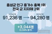 시민행정신문 강갑수 기자 | 지방 소멸 위기 속에서도 충북 음성군이 2025년 한해 괄목할 만한 인구 증가를 기록했다. 지난 12월 31일 기준 음성군의 인구는 9만 4280명으로 전년 대비 3044명이 늘어나며 3.34% 증가율을 보였다. 특히 음성군은 작년 한 해 인구 증가 수에서 충북도 1위를 차지했고, 전국 82개 군 단위 지자체 중에서는 전남 신안군(3685명)에 이어 2위에 이름을 올렸다. 군은 이번 성과의 배경으로 공격적인 기업 투자유치와 활발한 고용 창출을 꼽았다. 민선 7기부터 현재까지 14조 7000억원 규모의 투자를 이끌어내며 지난달 3000억원의 투자협약을 맺은 SPC(주)를 포함 190개 기업을 유치했고 이를 통해 1만 8600개의 일자리를 창출했다. 그 결과 2025년 상반기 고용지표 4개 분야에서 도내 1위, 지역활동인구 11만9700명으로 전국 군 단위 1위 수성은 물론, 지난해 전국 지방자치단체 일자리대상 공시제 부문에서 최우수상을 받으며 5년 연속으로 수상했다. 여기에 주택, 의료, 교육, 생활체육 등 정주 여건의 획기적인 개선도 인구 유입을 뒷받침했다.
