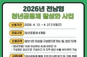 시민행정신문 강갑수 기자 | 영광군은 청년들의 지역 활동 기반을 마련하고 지역사회 활동 주체로 성장할 수 있도록 지원하기 위해 오는 4월 27일까지 ‘2026년 전남형 청년공동체 활성화 사업’ 참여팀을 모집한다고 밝혔다. 이번 사업은 총 6개 팀을 선정해 팀별로 600만 원의 활동비를 지원하며, 발대식과 성과공유회, 네트워크 행사 등 다양한 교류 프로그램도 함께 운영될 예정이다. 신청 대상은 청년 5인 이상으로 구성된 팀·법인·단체이며, 모집 분야는 ▲지역연계 ▲일자리·창업 ▲문화·예술 ▲봉사활동 등 4개 분야다. 지역사회에 새로운 활력을 불어넣고 다양한 공동체 활동을 희망하는 청년이라면 누구나 참여할 수 있다. 참여를 희망하는 청년공동체는 영광군청 누리집에 게시된 공고문을 확인하여 관련 서류를 제출하면 되며, 자세한 사항은 영광군 인구교육정책실 청년지원팀으로 문의하면 된다. 영광군 관계자는 “지난해 전라남도 청년공동체 성과공유회 최우수상 수상을 통해 우리 군 청년들의 우수한 역량을 입증한 바 있다”며, “올해도 청년들의 창의적인 활동이 지역사회에 실질적인 변화와 활력을 가져올 수 있