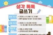 시민행정신문 기자 | 제주도교육청 서귀포도서관은 4월 5일부터 초등학교 4~6학년을 대상으로 ‘생각 톡톡 글쓰기’ 프로그램을 운영하며 참가자 15명을 선착순 모집한다. 이번 프로그램은 어린이들이 생각을 글로 표현하는 과정을 통해 창의적 사고력과 자기표현 능력을 키울 수 있도록 마련됐다. 운영 기간은 4월 5일부터 5월 3일까지이며 매주 일요일 오전 10시부터 12시까지 총 5회에 걸쳐 진행된다. 교육은 고지은 독서논술지도사가 맡아 ▲좋은 글 읽기 ▲글감 찾기 ▲글의 구조 이해 ▲초안 작성 ▲퇴고 과정 등 단계별 글쓰기 활동으로 구성되며 학생들이 자신만의 글을 완성할 수 있도록 지도할 예정이다. 특히 마지막 차시에는 어린이 작가와의 만남과 낭독회를 통해 학생들이 직접 쓴 글을 발표하는 기회를 제공한다. 참가 신청은 24일 오전 10시부터 제주특별자치도교육청 공공도서관 누리집을 통해 가능하며 선착순으로 마감된다. 서귀포도서관 관계자는 “이번 프로그램이 어린이들이 글쓰기에 대한 흥미를 높이고 자신의 생각을 자신감 있게 표현하는 계기가 되기를 기대한다”며 “앞으로도 다양한 독서·