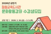 시민행정신문 기자 | 철원교육도서관은 3월 17일부터 6월 13일까지 지역주민의 문화 향유 기회 확대를 위한 상반기 문화활동 강좌를 운영한다. 이번 강좌는 유아, 학생, 학부모 및 시니어를 대상으로 총 7개 강좌를 운영하며, 본관 1~3교육실과 연계기관인 드림스타트 및 희망지역아동센터에서 진행한다. 유아 대상 강좌는 다양한 미술 재료를 활용한 기초 표현 활동 △플레이 아트와 그림책을 활용한 독서 및 의사소통 활동 △신나는 그림책 여행을 운영한다. 학생 대상 강좌는 세계 요리를 통해 다양한 문화를 이해하는 △흑백요리사와 자연 속 식물을 주제로 한 체험 관찰 활동 △파브르 식물기로 구성됐다. 학부모 대상 강좌는 일상과 여행에서 활용 가능한 생활 영어회화를 배우는 △모두의 영어와 풍경을 관찰하며 선과 형태로 표현하는 △오늘은 어반스케치를 운영한다. 또한 시니어를 위한 △브라보 시니어 라이프를 통해 신체 활동과 레크리에이션을 활용한 인지 활성화 프로그램을 진행한다. 도서관은 이번 프로그램을 통해 세대별 맞춤형 문화·체험 활동을 제공하고, 지역사회와 연계한 평생학습 기반을 강화하고