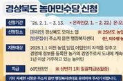 시민행정신문 강갑수 기자 | 성주군은 농어업·농어촌의 공익적 가치를 보전하고 농어민의 소득 안정을 도모하기 위해 2026년도 농어민수당 신청 접수를 실시한다. 이번 농어민수당 신청은 2026년 2월 1일부터 3월 13일까지 진행되며, 온라인과 오프라인 방식으로 병행 접수한다. 온라인 신청은 2월 1일부터 2월 22일까지 경상북도 공공서비스 플랫폼인 ‘모이소(Moiso)’ 앱을 통해 가능하며, 방문 신청은 2월 23일부터 3월 13일까지 주소지 읍·면 행정복지센터에서 접수할 수 있다. 신청자는 신청 기간 내 편리한 방법을 선택하여 신청하면 된다. 신청 대상은 2024. 12. 31일까지 농어업경영체 등록을 마치고 같은 날(2024. 12. 31.)까지 경북도 내에 주민등록을 두고 신청일 기준 1년 이상 계속 거주하면서 실제로 농업·임업·어업에 종사하는 경영주이다. 다만, 농어업 외 소득이 일정 기준을 초과하거나 보조금 부정 수급 이력이 있는 경우 등은 관련 규정에 따라 지급 대상에서 제외될 수 있다. 경상북도 농어민수당은 농가당 연 60만 원이 지급되며, 자격 요건 검증과