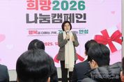 시민행정신문 기자 | 안성시는 12월 4일 경기 사회복지공동모금회와 함께 ‘희망 2026 나눔캠페인’ 행사를 열고, 연말연시 따뜻한 나눔 분위기 확산에 나섰다. 이날 행사에는 김보라 안성시장을 비롯하여 경기 사회복지공동모금회 김효진 사무처장 및 관계자, 그리고 지역 내 주요 기부 참여 기업인 ㈜그랜드썬기술단에스피, 한솔아이원스(주), ㈜삼양컴텍, 한일크린에너지(주), 골프클럽큐레저산업(주) 등 기업인들이 함께해 자리를 빛냈다. ‘희망 2026 나눔캠페인’은 2025년 12월 1일부터 2026년 1월 31일까지 두 달간 진행되며, 안성시의 모금 목표액은 5억 원이다. 시민과 지역 기업이 정성으로 모은 성금과 물품은 관내 어려운 이웃에게 전달될 예정이다. 행사 주요 내용으로는 캠페인 소개를 시작으로 ‘사랑의 온도탑 제막식’과 ‘명사 열매달기’ 행사가 진행됐으며, 이어 기부금(품) 전달식이 열려 본격적인 나눔캠페인의 출발을 알렸다. 김보라 안성시장은 “이번 ‘희망 2026 나눔캠페인’을 통해 따뜻한 나눔의 가치가 지역사회 전반에 퍼지길 바란다”며 “시민 모두가 동참해 어려운 이웃과 온정을 나누는 시간이
