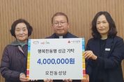 시민행정신문 강갑수 기자 | 모전동성당은 지난 4월 10일, 지역 내 어려운 이웃을 돕기 위해 신자들이 십시일반 모은 400만 원을 어려운 이웃을 위해 사용해달라며 이천시에 전달했다. 이번 성금은 경제적 어려움 속에서 생활하는 취약계층의 생계 부담을 덜고, 지역사회에 따뜻한 연대 가치를 확산하기 위해 마련된 것으로 실질적인 도움이 필요한 분들에게 사용될 예정이다. 모전동성당 이재훈 요한 보스코 신부님은 “작은 정성이지만 어려운 이웃들에게 위로와 희망이 되기를 바라는 마음으로 이번 나눔을 준비했다”라며 “앞으로도 지역사회와 함께 다양한 사회공헌 활동을 지속해 나가겠다”라고 밝혔다. 이천시청 홍현주 과장은 “종교단체를 통한 기부와 나눔 활동은 지역사회 복지 향상에 중요한 역할로 이웃 간의 연대와 공동체 의식을 강화해 나가는 데 기여하고 있다”라며 따뜻한 기부에 감사의 말을 전했다. 모전동성당은 지속적으로 어려운 이웃을 살피며 봉사하는 활동을 계속해 나갈 계획이다.