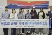 시민행정신문 강갑수 기자 | 수원시 영통구 영통3동은 지난 17일, 외국인 주민의 생활환경 개선과 자원 재활용률 향상을 위해 관내 외국인을 대상으로 올바른 분리배출 교육을 실시했다. 이번 교육은 생활쓰레기 배출 방식에 익숙하지 않은 외국인 주민들의 불편을 해소하고 올바른 분리배출 문화 정착을 돕기 위해 마련됐다. 교육에서는 다국어 분리배출 안내문을 활용해 투명 페트병 분리배출 방법과 유용 생활폐자원 교환 제도 등을 안내했다. 김인태 영통3동장은 "이번 교육을 통해 외국인 주민들의 환경 의식을 높이고 생활쓰레기 감량과 재활용 활성화에 실질적인 도움이 될 것으로 기대한다”며 “앞으로도 외국인 주민을 포함한 모든 주민이 쉽게 이해하고 실천할 수 있는 환경교육을 지속적으로 추진하겠다”고 밝혔다. 한편, 영통3동 행정복지센터는 관내 수원출입국외국인청을 방문해 ‘찾아가는 외국인 분리배출 교육’을 실시할 계획이다.