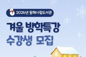 시민행정신문 강갑수 기자 | 동해시는 2026년 겨울방학을 맞아 관내 초등학생을 대상으로 동해시립도서관에서 겨울방학 특강 프로그램을 운영한다고 밝혔다. 이번 특강은 1월 19일부터 1월 23일까지 발한도서관, 북삼도서관, 꿈빛마루도서관에서 운영되며 북트레일러 크리에이터, 뚝딱! 과학 탐험대, 겨울나라 도자기 공방 등 총 6개 과정, 66명을 모집할 계획이다. 접수는 1월 6일 오전 10시부터 동해시립도서관 홈페이지를 통해 선착순으로 진행되며, 신청은 홈페이지 내 독서문화 → 프로그램 신청 메뉴를 통해 가능하다. 김은서 평생학습과장은 “이번 겨울방학특강을 통해 지역 어린이·청소년들이 다양한 창작·독서 체험을 경험함으로써 창의력과 사회성 향상에 도움이 될 것”이라고 말했다. 재료비를 제외한 수강료는 무료이며, 세부 내용은 동해시립도서관 홈페이지에서 확인할 수 있다. 기타 문의사항은 발한도서관, 북삼도서관, 꿈빛마루도서관으로 문의하면 된다.