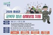 시민행정신문 강갑수 기자 | 음성군은 군복무 중인 지역 청년들이 예기치 못한 사고로부터 충분한 보장을 받을 수 있도록 ‘2026년 군복무 청년 상해보험 지원사업’을 추진한다고 밝혔다. 이번 사업은 군 복무 중 발생할 수 있는 각종 사고와 질병에 대비해 사회안전망을 강화하고 청년들이 국방의 의무에 전념할 수 있도록 지원하기 위한 것으로, 지난해에 이어 지속 추진된다. 보험 가입 대상은 2026년 3월 1일 기준 음성군에 주민등록을 두고 군 복무 중인 청년으로, 별도의 신청 절차 없이 자동 가입되며, 전역하거나 타 지역으로 전출할 경우는 자동 해지된다. 단, 직업군인·사회복무요원·산업기능요원은 제외다. 보장 항목은 기존 15종에서 2개 항목을 추가해 총 17종으로 확대됐다. 주요 보장 내용은 △상해·질병 사망 및 후유장해 시 최대 5천만원 △입원 일당 2만원(최대 180일) △수술비 20만원 △골절·화상 진단금 30만원 △정신질환 위로금 200만원 등이다. 특히 2026년에는 △폭발·화재·붕괴사태로 인한 상해사망 및 후유장해(2천만원) △외상후 스트레스장애(PTSD) 진단비(100만원)가